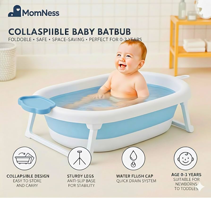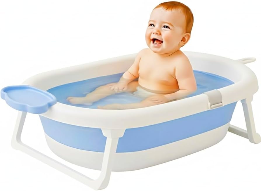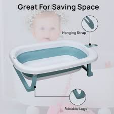 Foldable baby bath tub with anti-slip base.